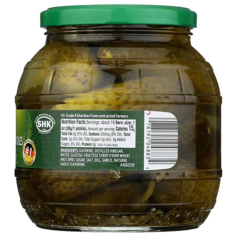 • Well seasoned, hand-picked garlic barrel pickles with a touch of garlic flavor