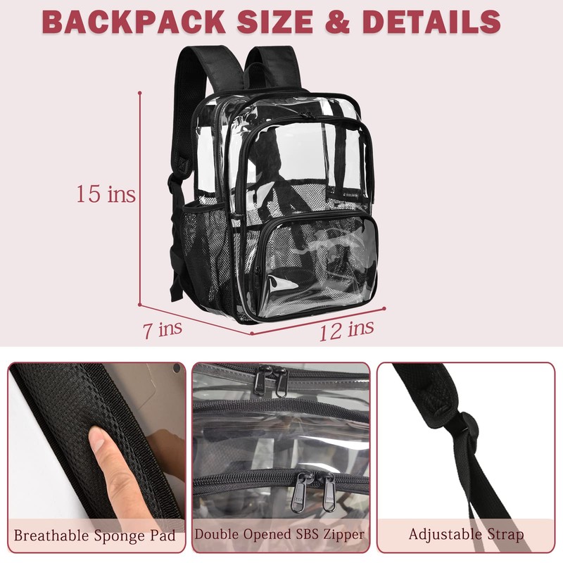 KUI WAN Mochila transparente, mochila transparente de PVC resistente, Azul marino