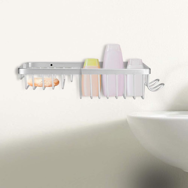 - SPACE SAVING DESIGN: The Bathroom storage rack is made of aluminum alloy material. The vertical wall-mounted design allows it to save more space and is very suitable for placement in the bathroom. In addition, the hollow design at the bottom can also avoid the problem of water accumulation, so you no longer have to worry about cleaning up the water. It provides storage space so you can neatly arrange decorations, toothbrushes, shampoo and other items.