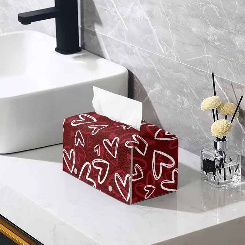 KUIFORTI Love Heart Tissue Box Valentines Day Leather Tissue Box Holder Rectangle Tissue Box Cover Rectangular Tissue Box Cover Water Resistant Kitchen Decoration Travel Party