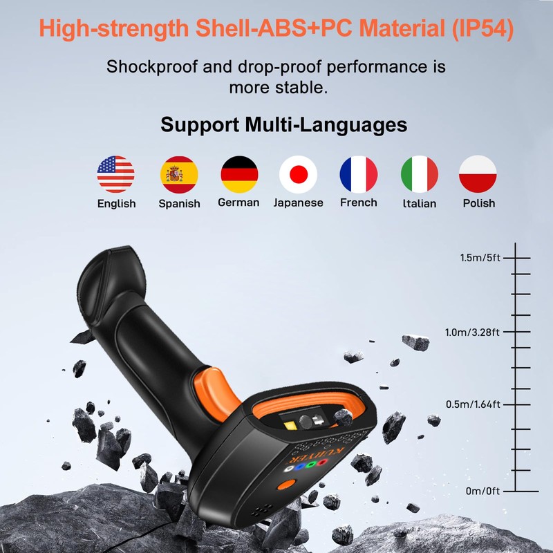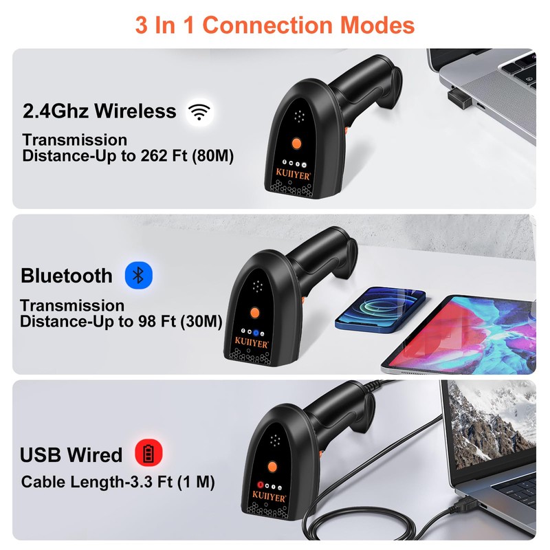 KUIIYER KUIIYER Bluetooth Barcode Scanner, Wireless 2D QR 1D Bar Code Scanners with LED Lights Display & AI Voice, Plug & Play Handheld Barcode Reader for iPhone, Android, iPad, Tablet, PC Computers & POS