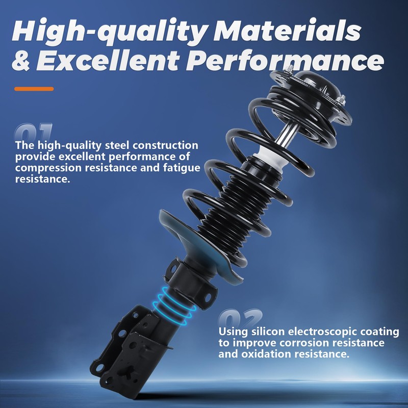 • Strict Quality Test: KUIPERAUTO Struts w/Coil Spring undergone high and low temp test and air spring blasting testing, Sway Bar End Links make salt spray test to ensure great quality. The Struts Assembly is excel in damping, effectively to dissipate energy for uneven roads to provide a smooth ride experience.