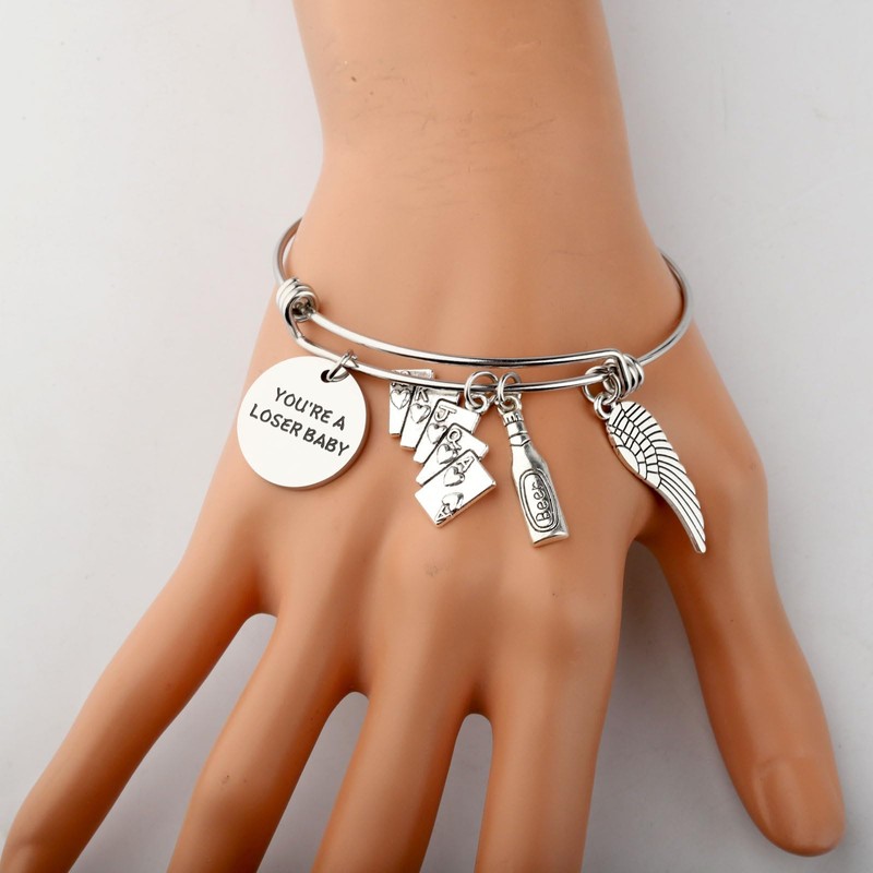 - 3.Size: the charm engraved with “You are a loser baby” is 0.79inch in diameter.