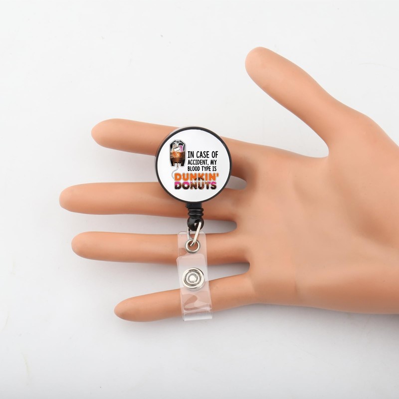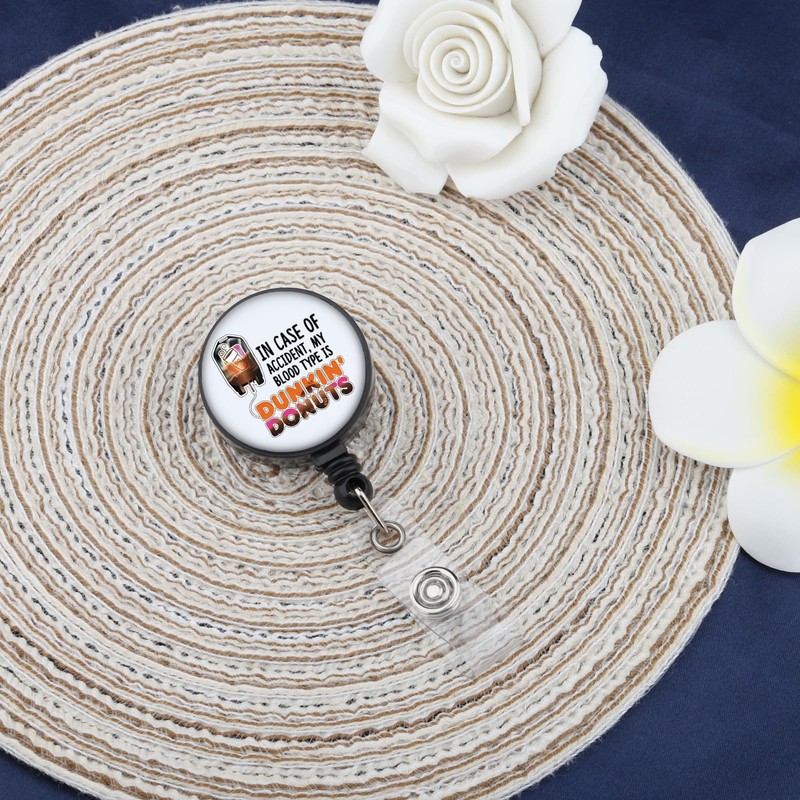 KUIYAI Coffee Donut Inspired Badge Reel Bakers Gift Cooking Gift Dessert Lover Gift Bakery Gift (Blood typedonut)