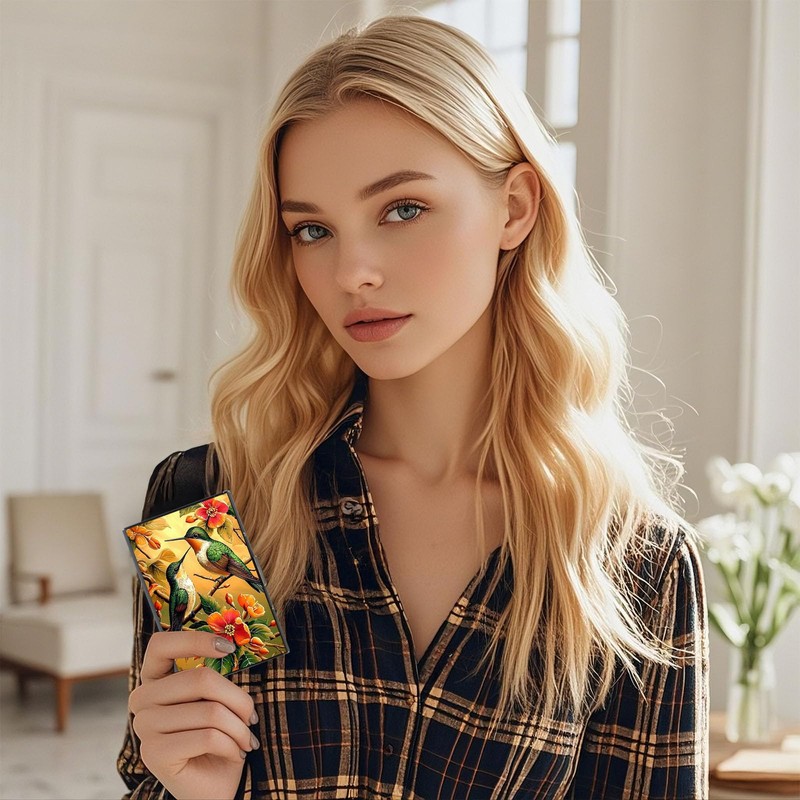 KUJKBFWJ Credit Card Holder Wallet for Women - Ultra-Slim Metal Card Wallet with RFID Blocking | Mini 6-Slot Card Case Wallet, Hummingbird, Secure & Stylish Metal Credit Card Holder