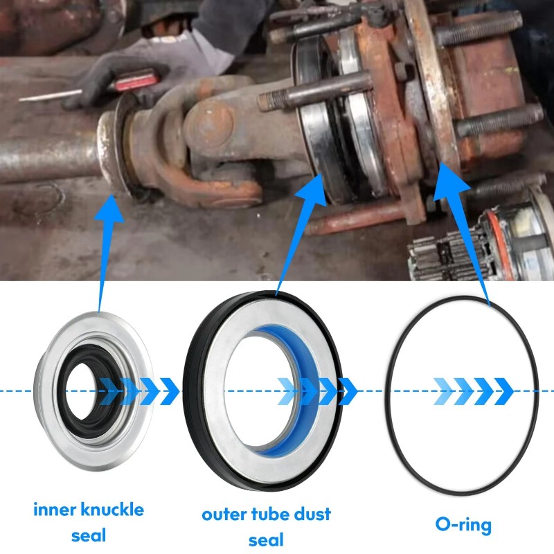- Package includes 2 x inner knuckle seals, 2 x Outer Tube Oil Seals, 2 x O-rings.