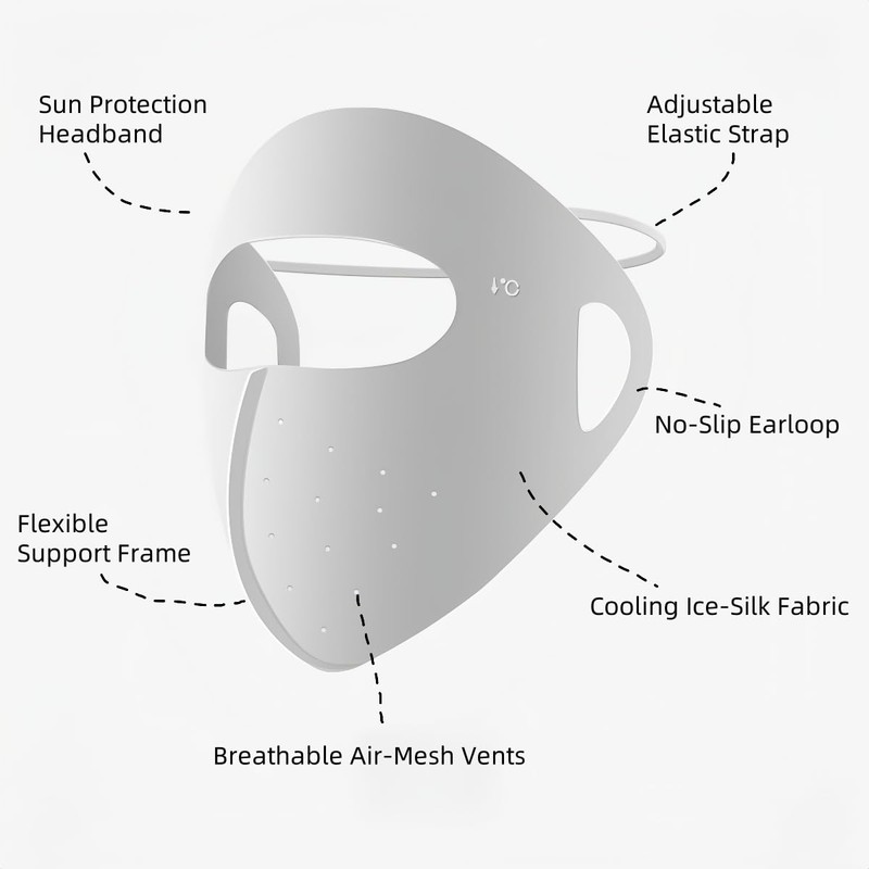 - Cooling Ice Silk Fabric Experience all-day comfort with the ultra-soft ice silk material. This lightweight, breathable fabric feels cool and silky-smooth against your skin, rapidly dissipating heat and moisture to keep you fresh in hot weather. The mask’s quick-dry, sweat-wicking fibers ensure you stay comfortable and dry even during intense activity.