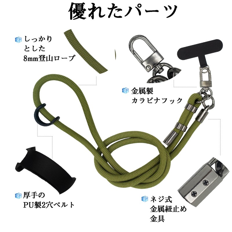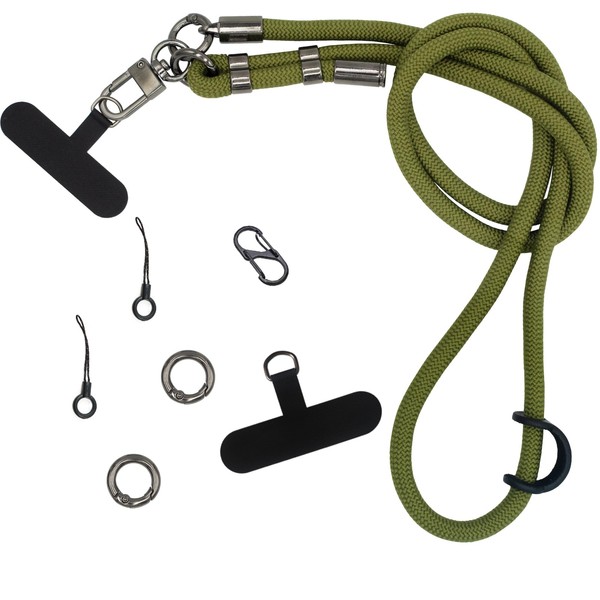- (Smartphone Strap Combines Stability and Fashion) The smartphone shoulder strap is made with a 0.3 inch (8 mm) thick climbing rope with excellent durability and abrasion resistance. The hardware used is made of zinc alloy material that is rust-free, wear-resistant, and corrosion-resistant. Can be used as a multi-neck strap for attaching keys, connecting a coin case or pass case. Unisex