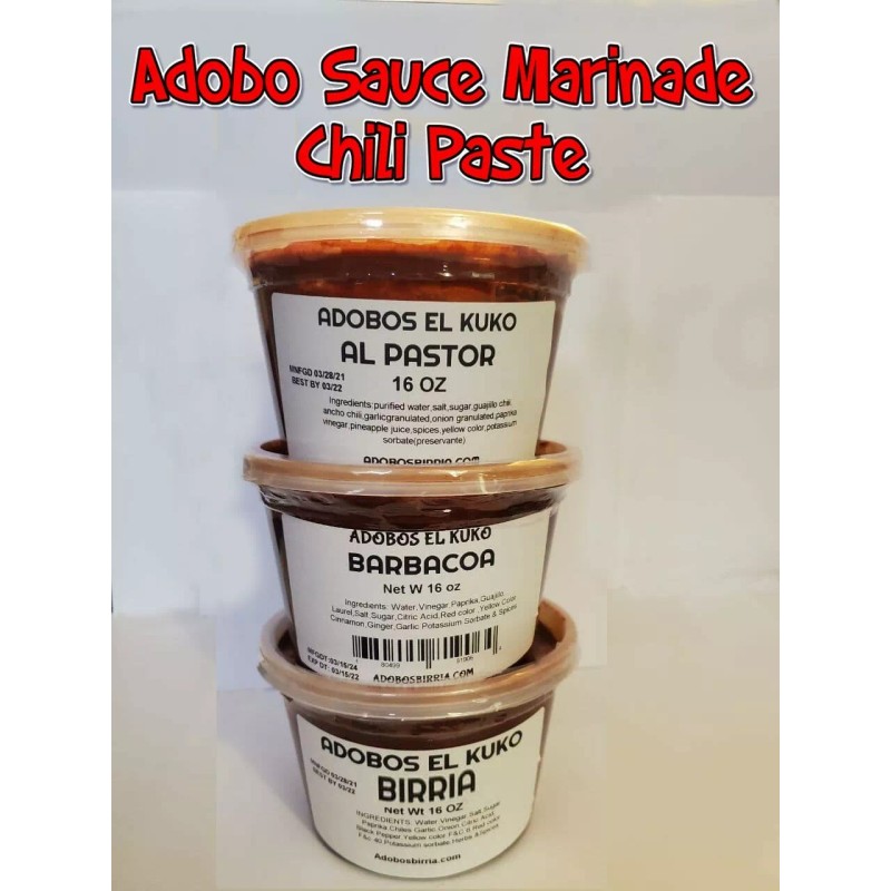Kuko's Birria Al Pastor Barbacoa Adobos - 3 16oz make tacos quesadilla burritos consomé