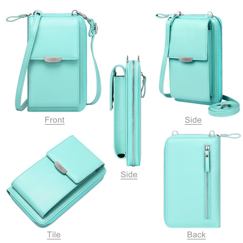 KUKOO Small Crossbody Bag Cell Phone Purse Wallet with Credit Card Slots for Women, A- Green Zipper Upgraded Version, one_size
