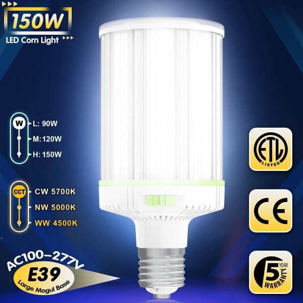 KUKUPPO 150W LED Corn Light Bulb E39 Mogul Base, Warehouse High Bay Light Adjustable CCT