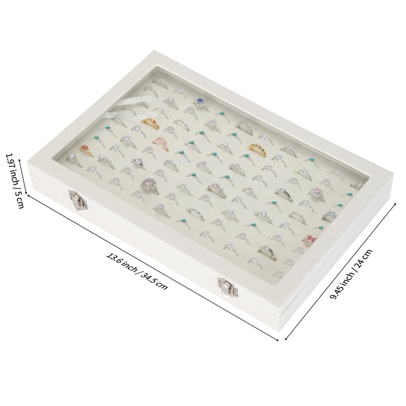 - 100 SLOTS LARGE CAPACITY : Size 13.8*9.5*2inch/35*24*5cm, Our ring storage box has a large capacity of 100 slots, which can fully meet your daily jewelry storage, so that your rings will not be scattered in the corner and forgotten