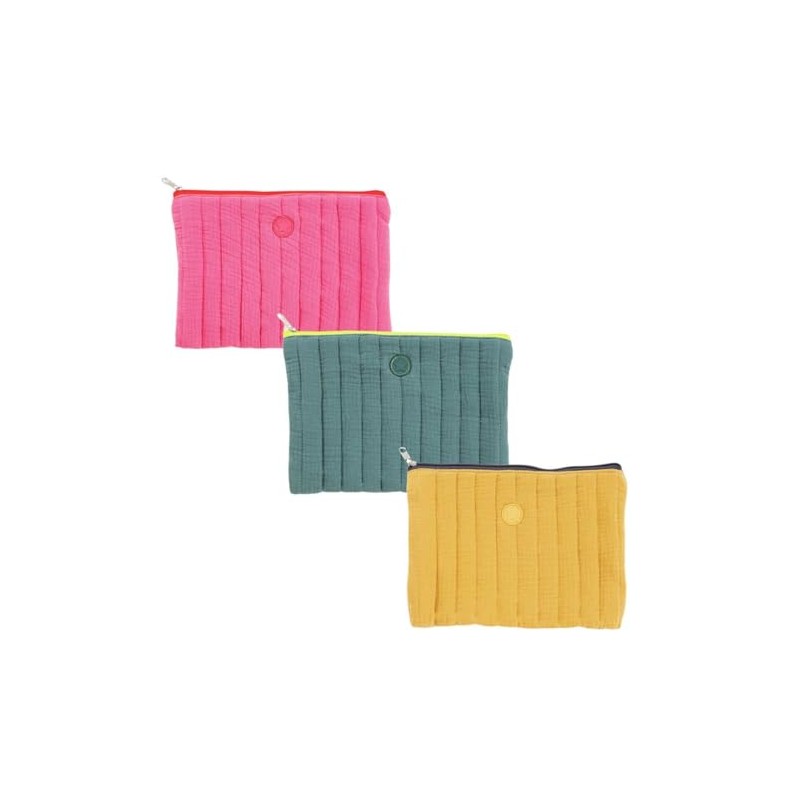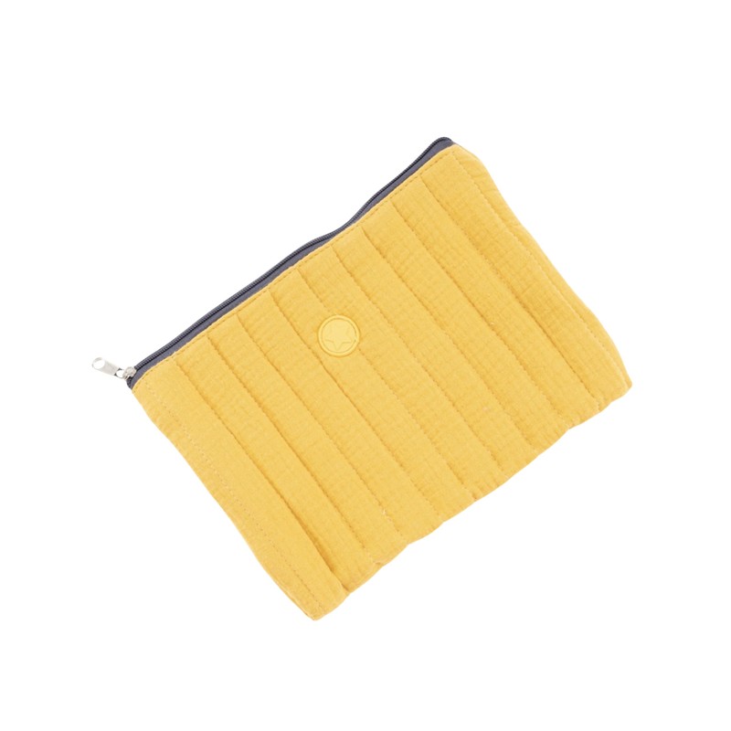 Kulturbeutel aus Baumwolle mit Stern, doppeltem Reißverschluss, Tragegriff, 20 x 12 x 12 cm, Neonrosa, Ocker, Meeresgrün, Flacher Ocker, Klassisch