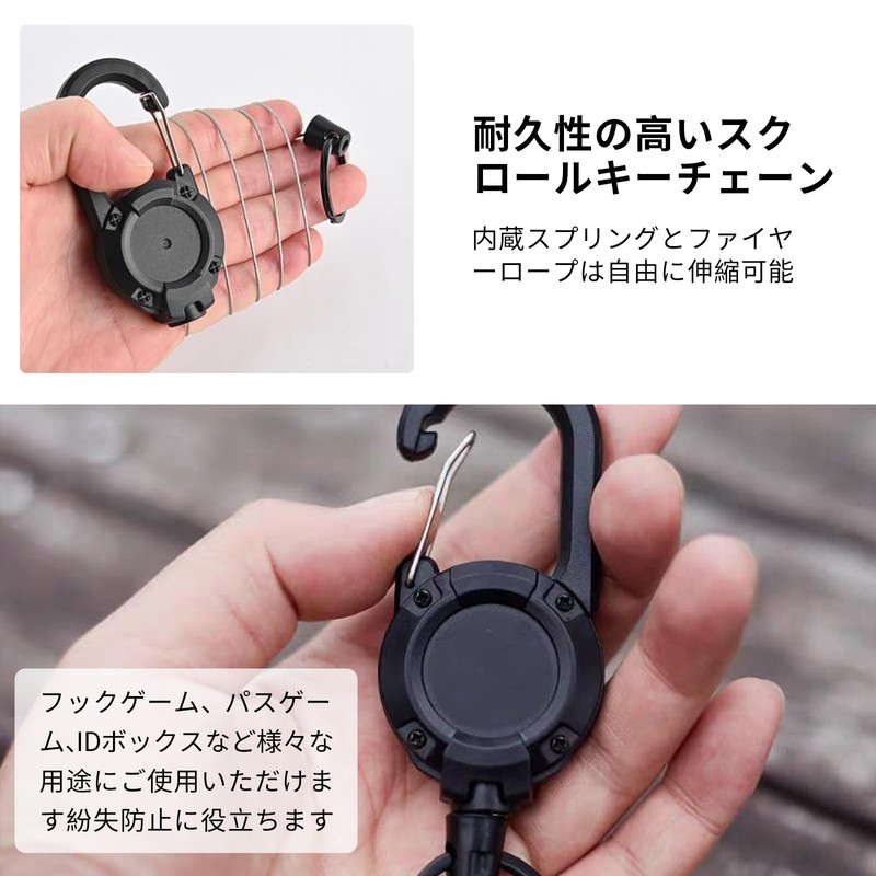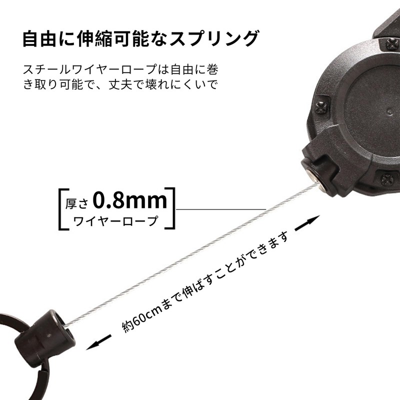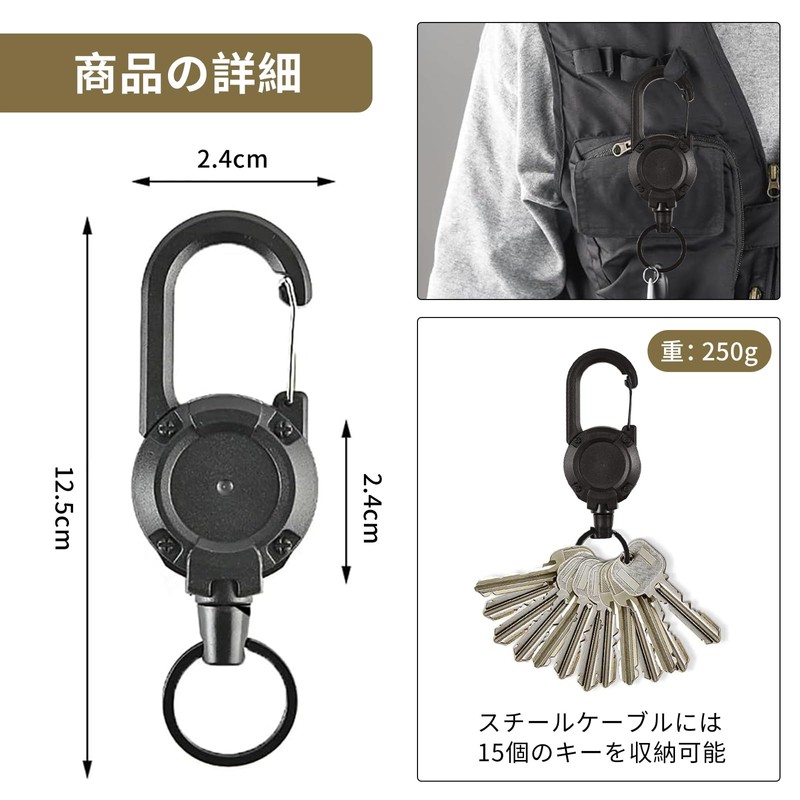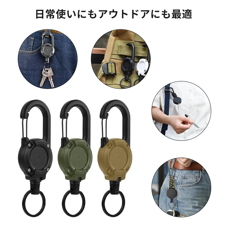 - 【Materials and Specifications】:This set includes 3 pieces of black, army green and khaki. The body of the reel keychain is made of ABS plastic, equipped with a zinc alloy carabiner and metal wire (rope), total weight is about 30 grams, and the elastic length is about 60cm