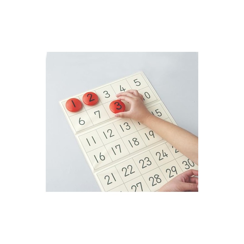 - Place the magnetic links on the board and recover up to 30. The front of the board is numbered and the back is plain squared, and the links are 1-10, 11-20, 21-30 are color-coded respectively
