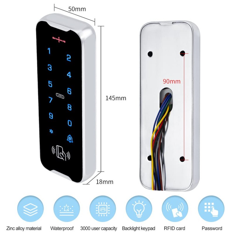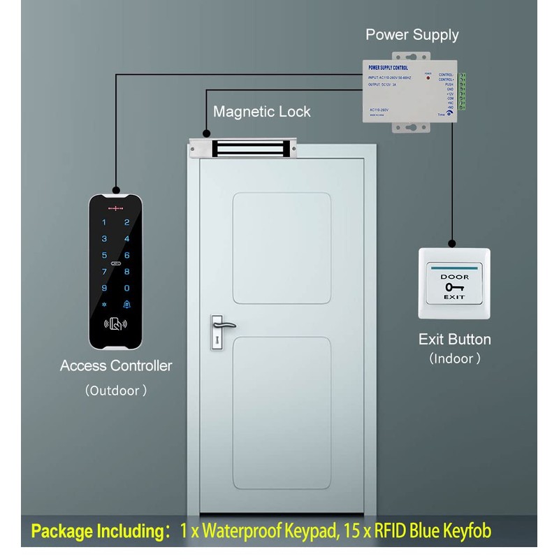 KUMU IP68 Waterproof Access Control Keypad 125KHz Plastic Keyboard + 10pcs EM4100 Keyfobs for Home/Office (S50)