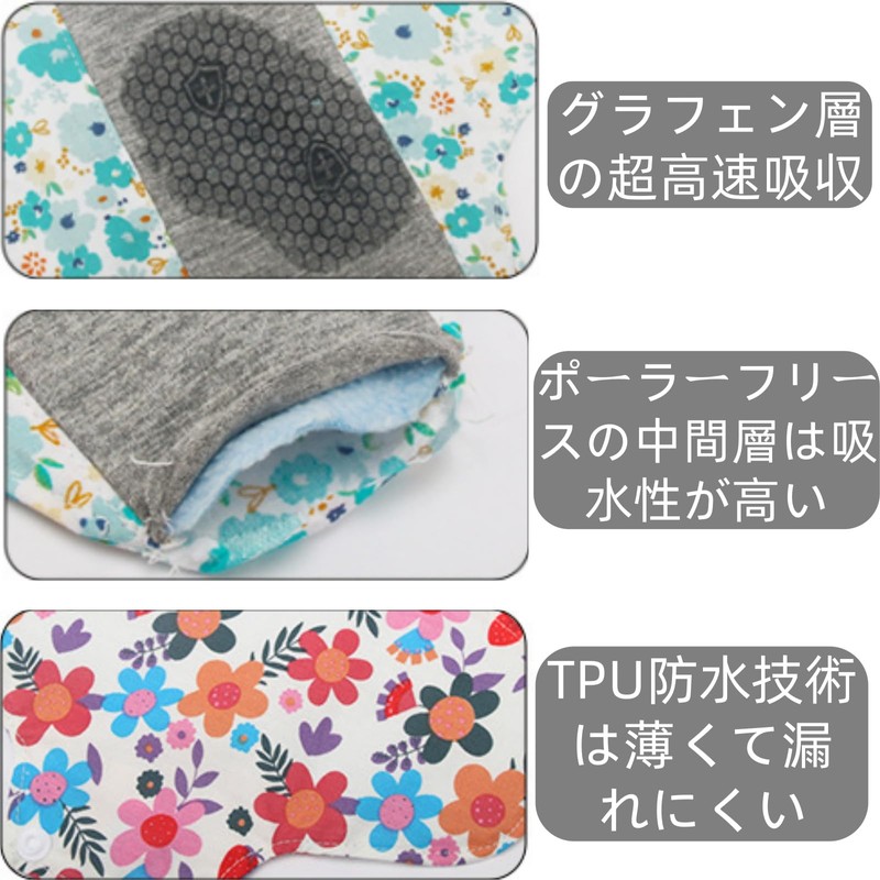 - ABSORBENT: The middle layer uses a polar fleece cloth absorbent layer that can absorb liquids instantly, and the outer PUL waterproof layer is effectively waterproof and easy to clean. No need to worry about leaks when using, and comfortable to use for a long time