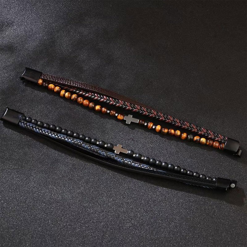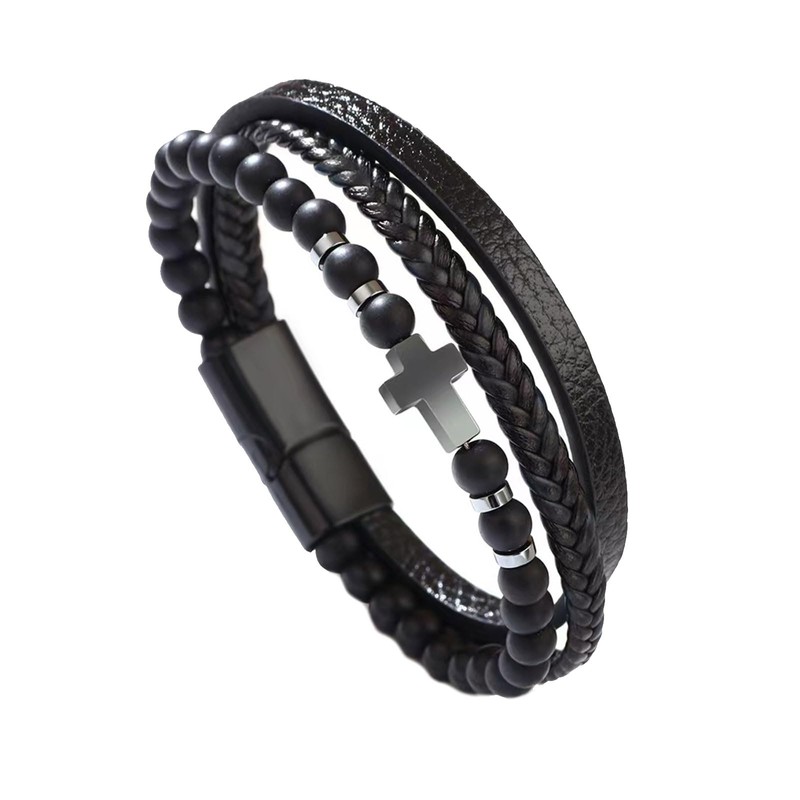 KunBead Mens Black Braided Leather Wrap Cross Bracelets for Women Handmade Multi-Layer Bracelet Rope Cuff Bangle