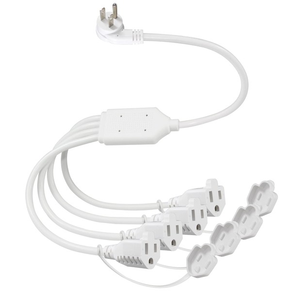 - 【4-Outlet Splitter】This White 4-way splitter is the ideal way to turn a single outlet into four. Easy to install. Better than a power strip, each outlet gets its own cable, the 1.5FT long length of this 4-way plug extension cord provides more flexibility and better organization to eliminate clutter caused by bulky.