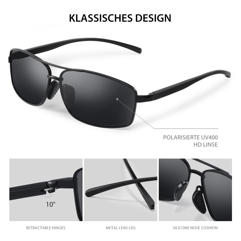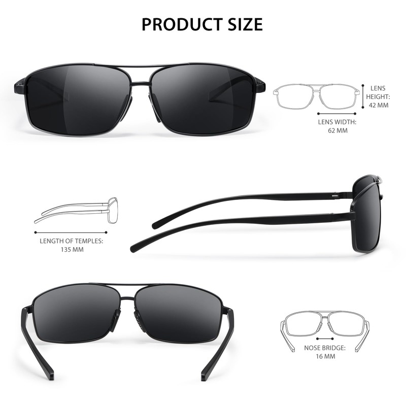 - STAINLESS STEEL ALUMINIUM MAGNESIUM FRAME - The polarised sunglasses men are made of high quality materials with strong and long-lasting aluminium-magnesium frames that are lightweight and stable. Choose the right frame and nose piece design to ensure comfort.