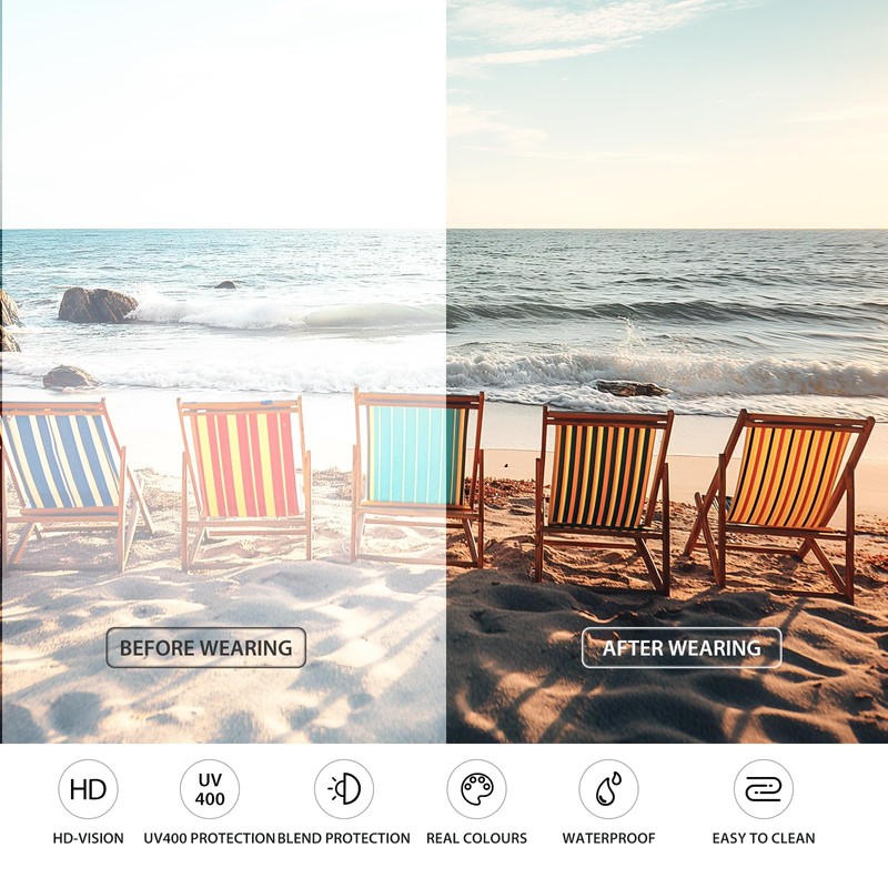 - TAC POLARISED LENSES - sports sunglasses for men effectively block harmful light, eliminate reflected and scattered light, block glare and restore true colours. The lenses are strong and impact resistant. Provide clearer and more comfortable vision. Suitable for driving, fishing, golf and other outdoor activities.