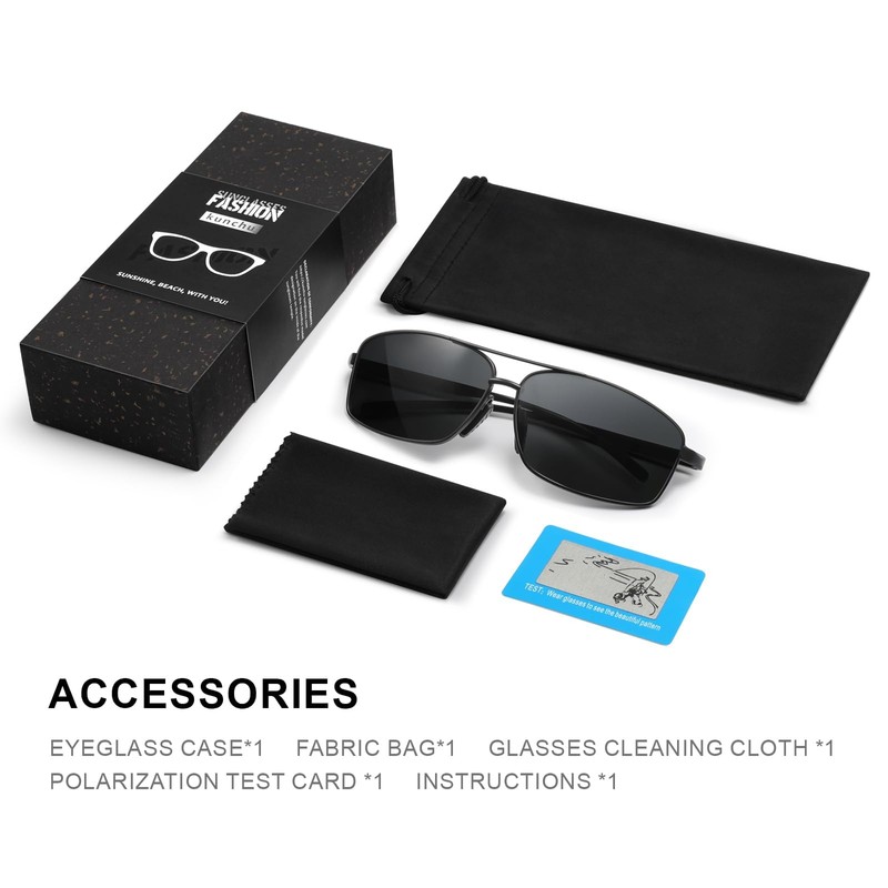kunchu Sunglasses-Mens-womens Polarised Rectangular Sunglasses-Ladies Lightweight Metal Frame UV400 Protection Retro Sunglasses Sports Sunglasses Travel Sunglasses (black)