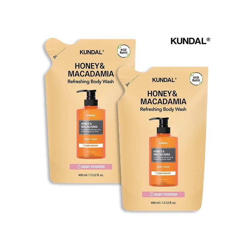 Kundal Honey & Macadamia Body Wash Refill Pack 400ml x 2, White Musk / 쿤달 허니&마카다미아 바디워시 리필팩 400ml 2개, 화이트머스크