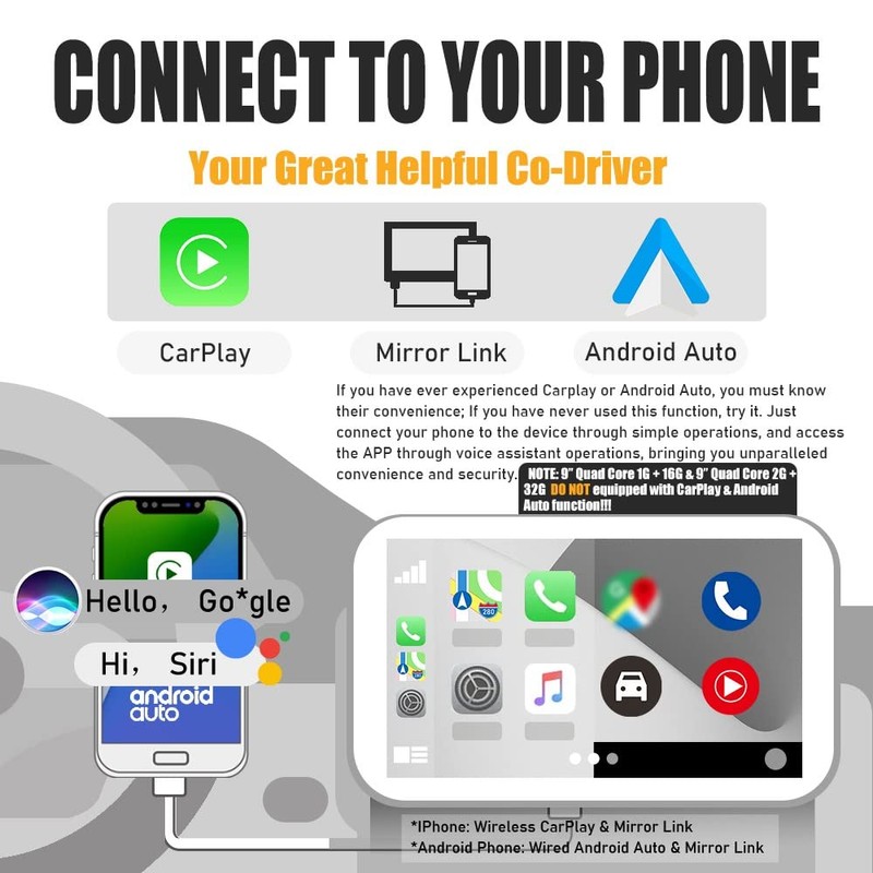 1.If you want CarPlay or Android Auto function, please choose the correct options, this option contains NO built-in CarPlay or Android Auto;