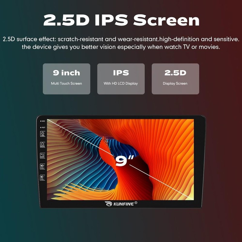 Kunfine Car CarPlay Android Auto Navigation Stereo GPS Radio Display 9" IPS Touchscreen Headunit Tablet Pad Media Player for Ford Focus 2012-2018, if Applicable Quad Core 2G+32G Original Car Style