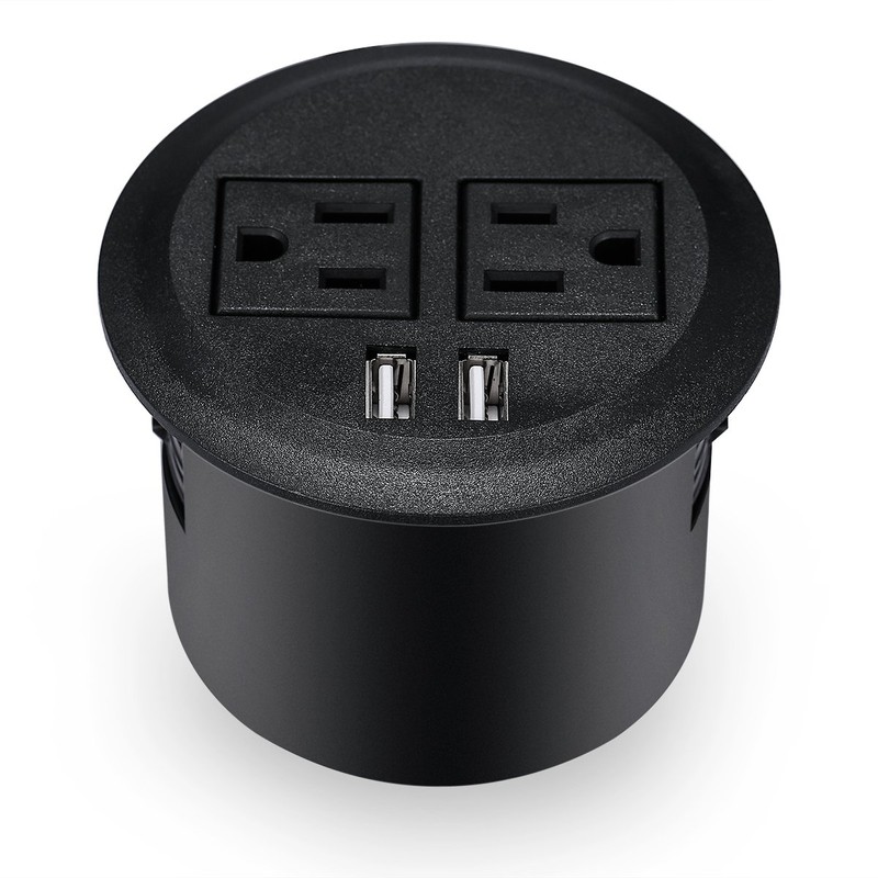 Kungfuking Desktop Power Grommet Power Outlet Socket Desk Data Center 2 Outlet with 2 USB Ports with 10 FT Extension Cord