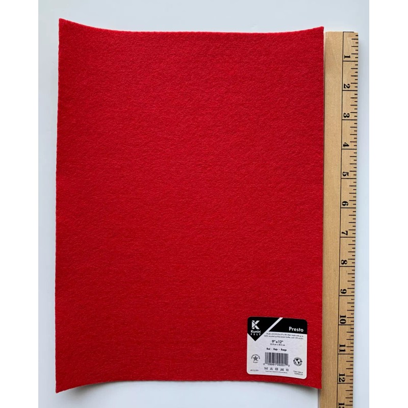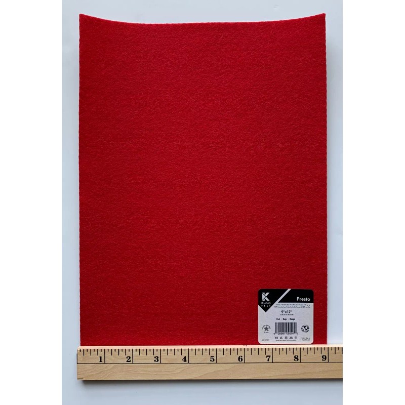Kunin Red Presto Sticky Back Adhesive Felt Sheet 9 x 12 Eco-Fi Kunin