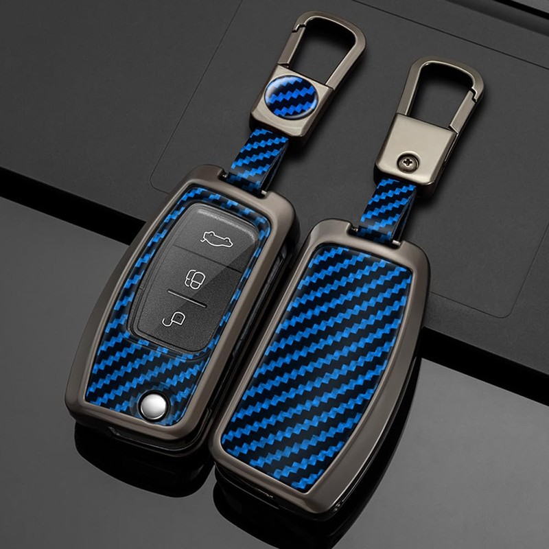 KUNIO Car Key Fob Cover fit ford Fiesta Focus MK2 C-Max B-Max Eco Sport Escort Tourneo Courier Ecosport Flip Key Protection Metal Key Cover 3 Buttons Key Fob B Blue