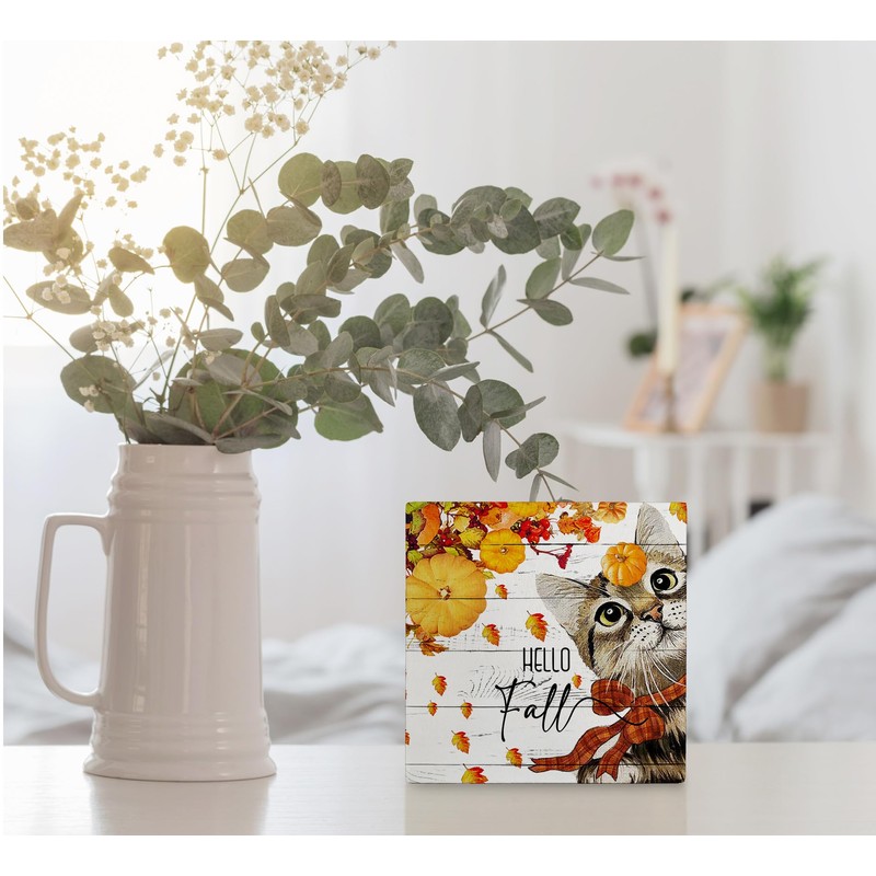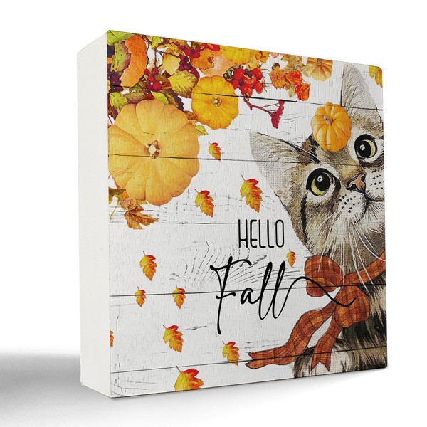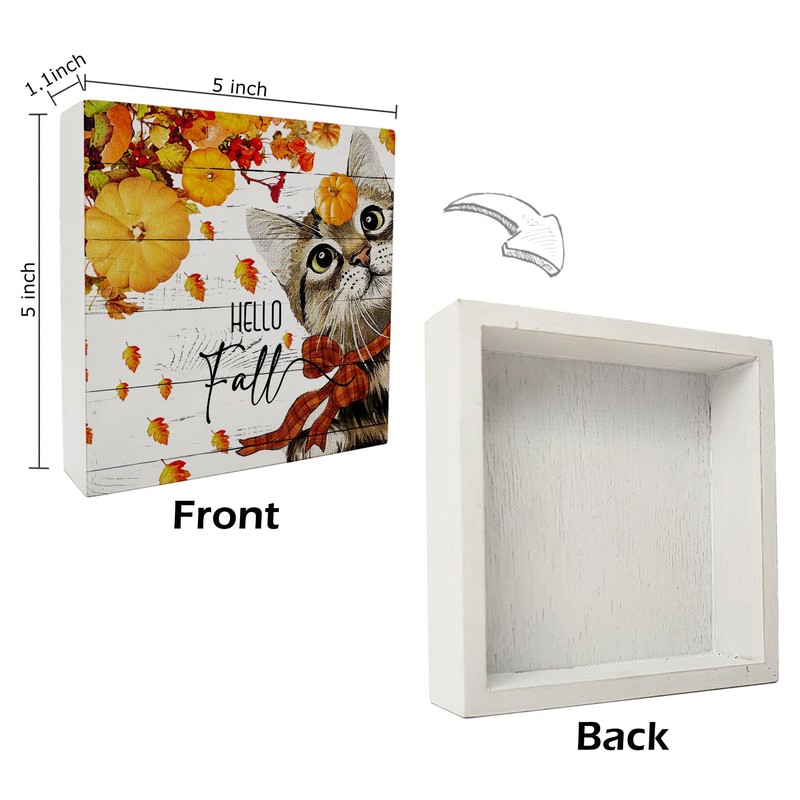 kunlisa Fall Signs,Fall Cat Pumpkin Wood Box Sign Desk Decor,Rustic Autumn Harvest Wood Block Plaque Box Sign for Home Farmhouse Shelf Table Decor 5x5 Inch (pumpkin)