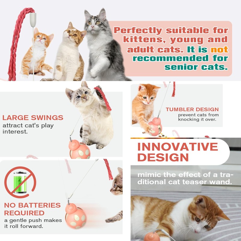 - 💪【Stabiles Design - Kippsicher und robust】💪 Dank seines innovativen, kippsicheren Designs bleibt dieses Katzenspielzeug selbst bei den wildesten Spielen standhaft. Der selbstrollender ball für katzen rollt und springt unvorhersehbar, während der Teaserstab mit Plastikball und Bändern an der Spitze für eine lebendige Bewegung sorgt. Das robuste Material und die durchdachte Konstruktion machen dieses Spielzeug zu einem langlebigen Begleiter für Ihre Katze.