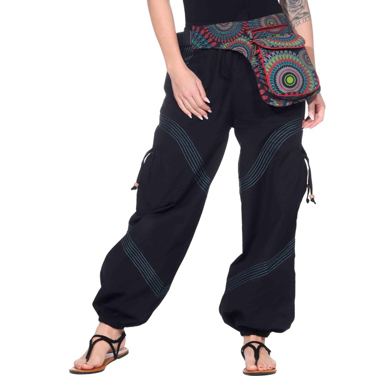 Kunst und Magie Bum Bag with Mandala Print, Festival Bag - Black -