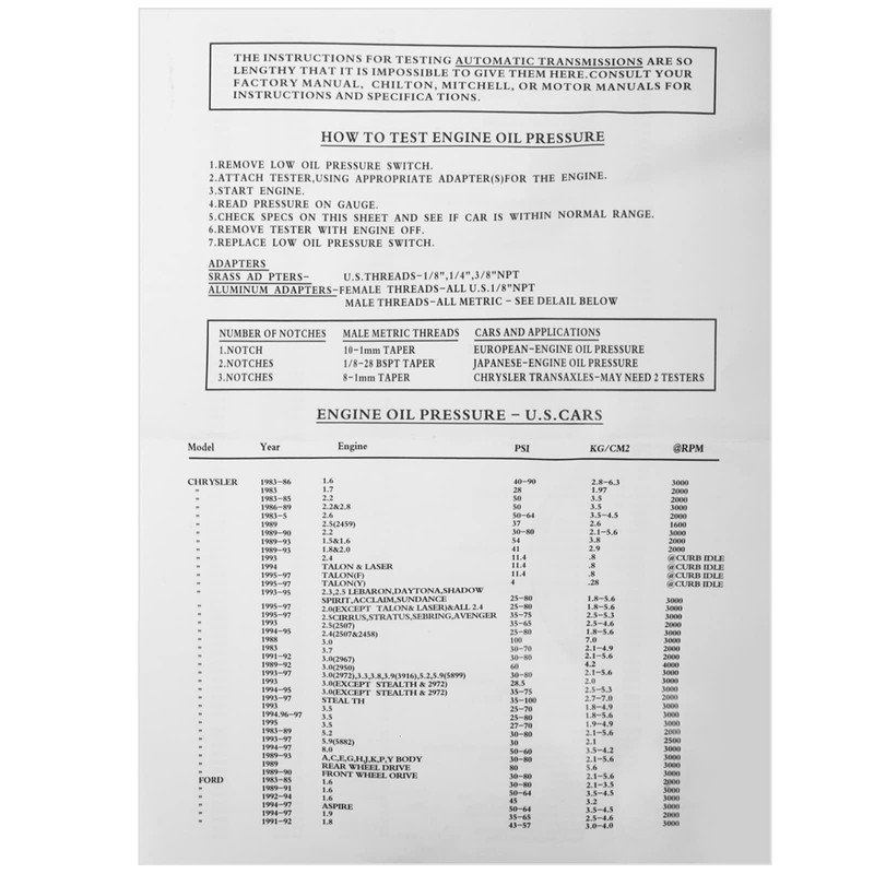 KUNTEC 0-500PSI Engine Oil Pressure Gauge Transmission Fluid Diagnostic Tester Tool Kit