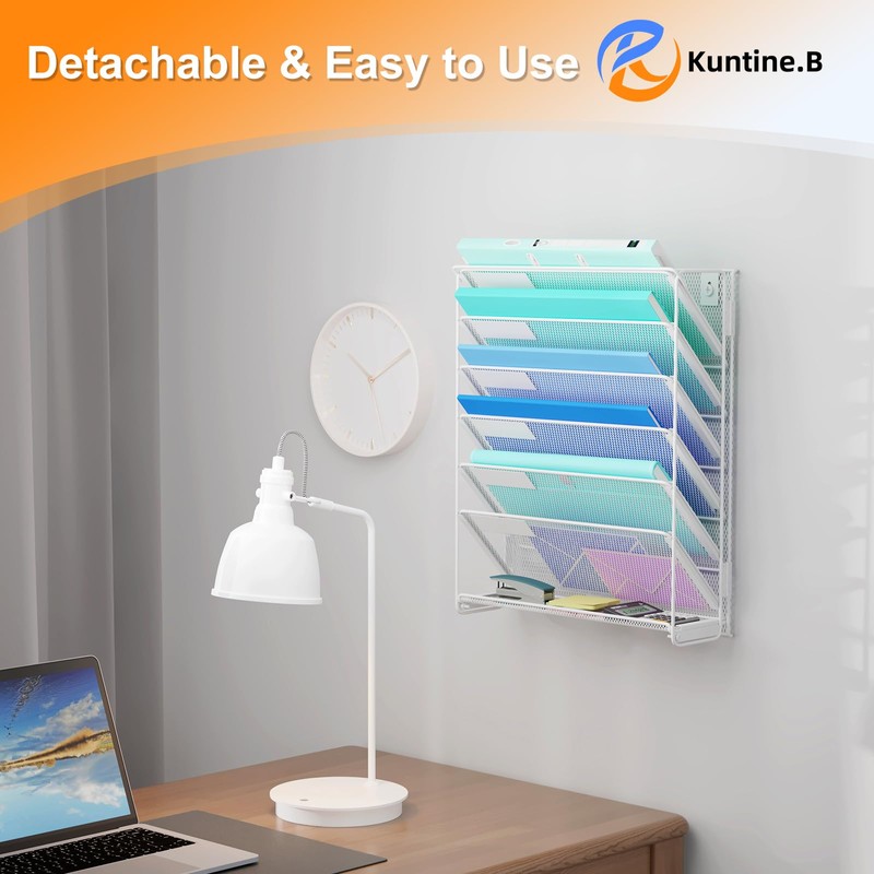 - The file holder can be wall mounted with screws and drywall anchors (included), or stand upright on your desk. The wall organizer is detachable and easy to assemble