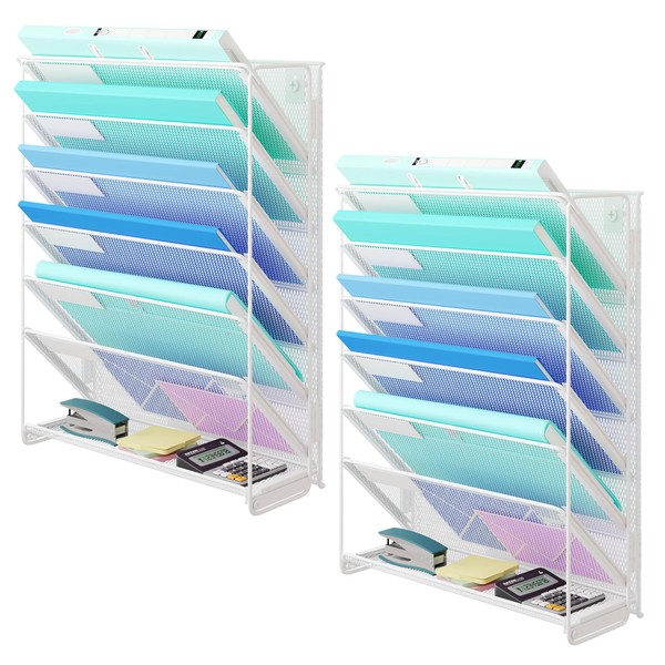 Kuntine.B 7-Tier Hanging File Organizer Vertical Wall File Holder, Mesh Magazine Rack Mail Document Organizer for Office School Home (White, 2 Pack)