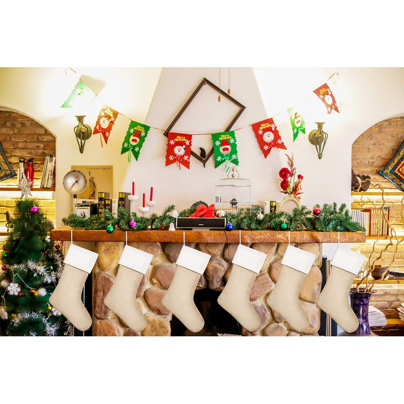 Kunyida 18" Burlap Christmas Stockings Bulk Plain Xmas Neutral Stockings for Fireplace Hanging,Pack 10