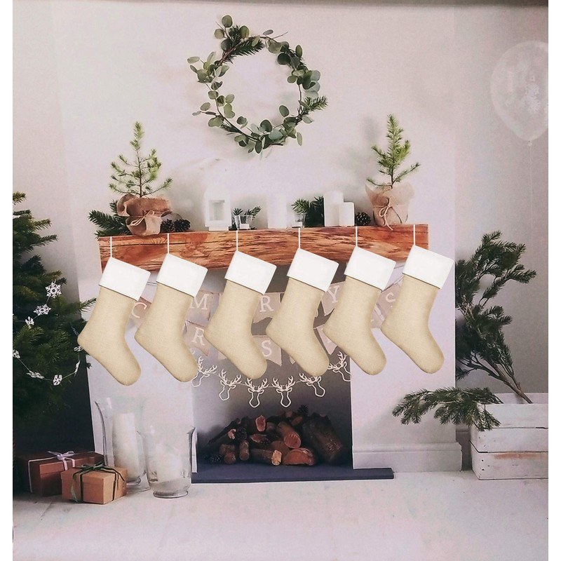 - Standard large size 18" long,width:7";Without lining; Come with 10 pack of rustic white burlap christmas stockings