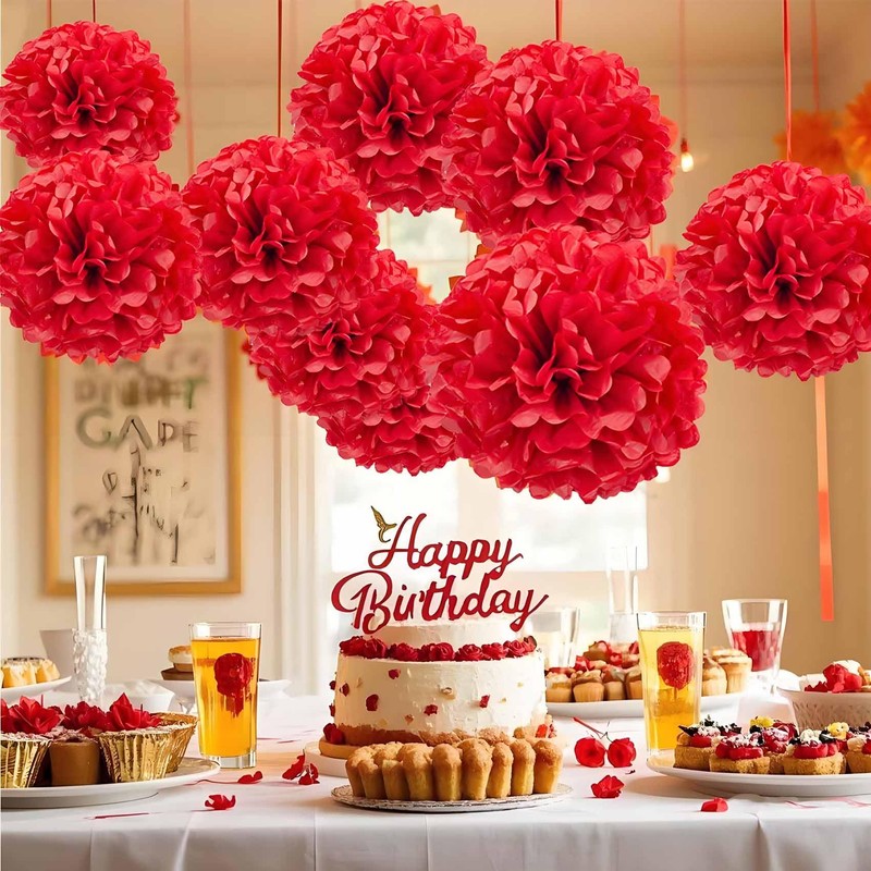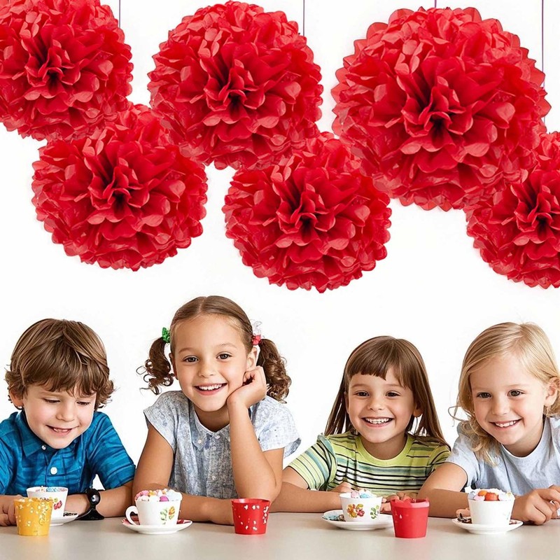 KUNYYI Red Tissue Paper Pom Poms Flowers Balls 12 Pcs are Perfect for Party Celebrations or Any Red-Themed Event Decoration