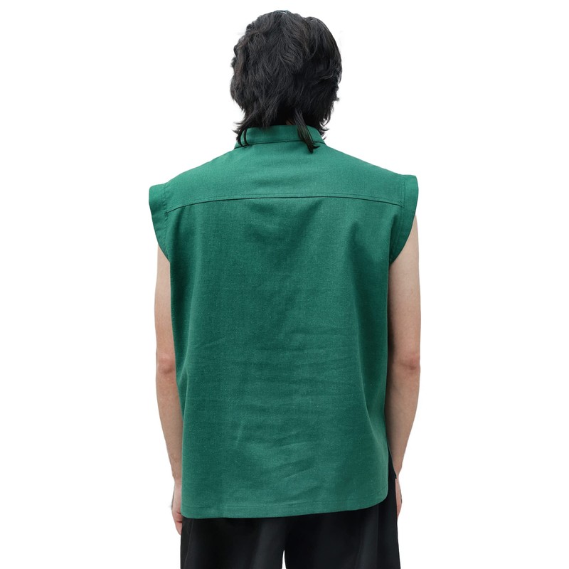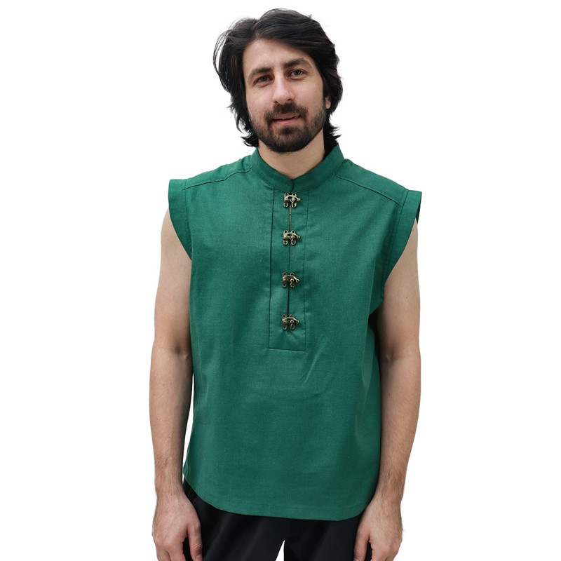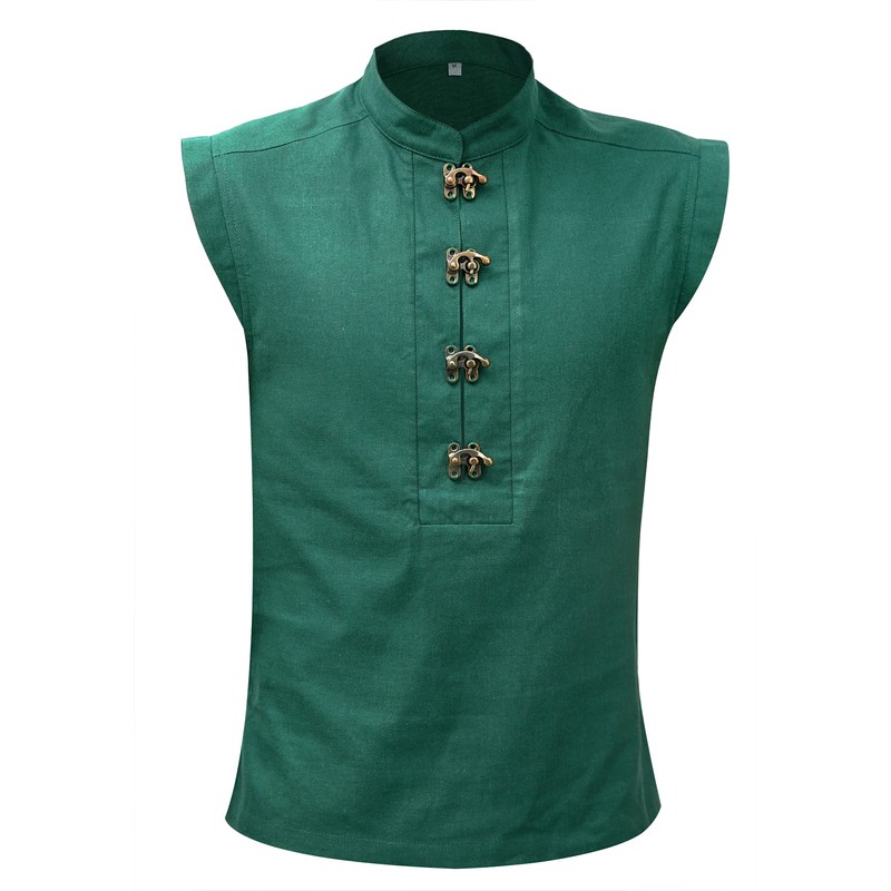 KUOIN Medieval Shirt for Men Linen Viking Pirate Sleeveless Tunic with Retro Button Green Brown
