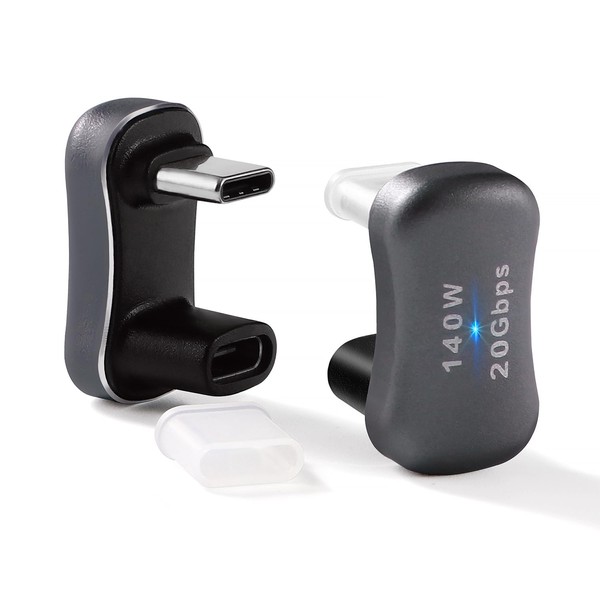 KUOQIY 2 Pieces U-Shape USB-C Male to USB-C Female Adapter, USB C U Adapter USB C 180 Degree Adapter Supports 20Gbps Data 140W Charging and 4K Video, with Indicator Light, for Laptop, Tablet
