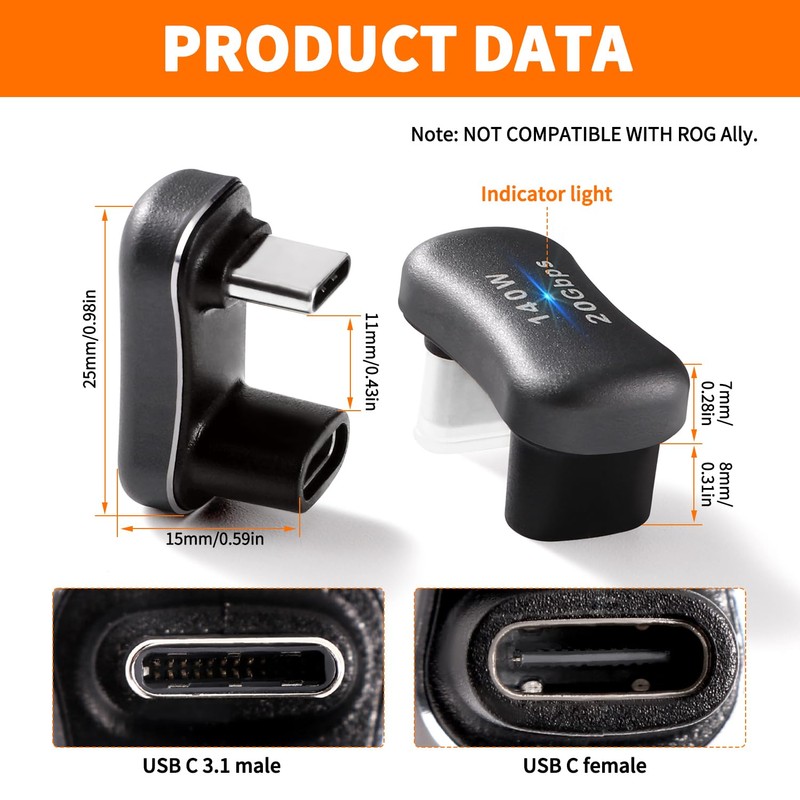 - Wide Compatibility The U shaped type c extender is widely compatible with various USB C devices, compatible with Steam Deck, Switch, MacBook Pro/Air, Surface Book 2, Galaxy S21/S20/S10, Note20/10, LG G7 V20, Pixel, Chromebook and other Type C devices. (Note: NOT COMPATIBLE WITH ROG ALLY).