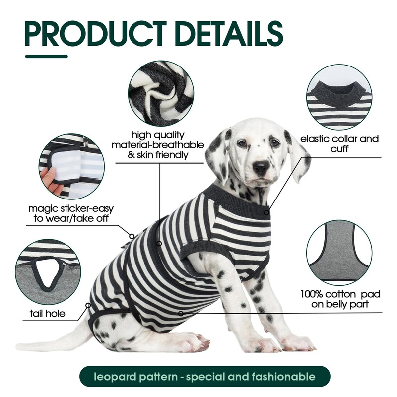 - Practical: our dog bodysuits protect your pet's wounds, stains, cuts or body when they are neutered, has skin diseases, sheds hair, etc., without restricting them in their movement, ensuring that your little four-legged friend stays calm and stress free