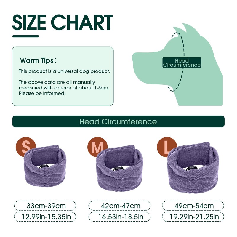 • 3 Sizes: dog ear protectors with S, M, L Size. Measure your dog’s head circumference (chin to head) for fit