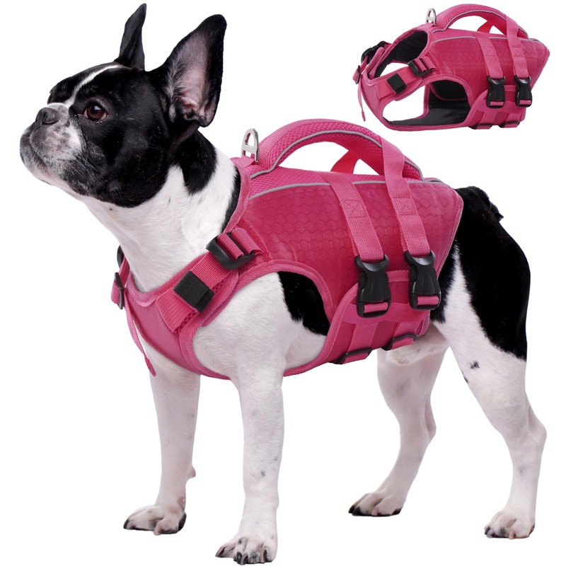 Kuoser Dog Life Jacket High Flotation, Reflective Dog Life Vest for Swimming Boating, Adjustable Small Medium Large Dog lifejacket, Lightweight Dog Life Preserver Rescue Handle Spring Summer Pool