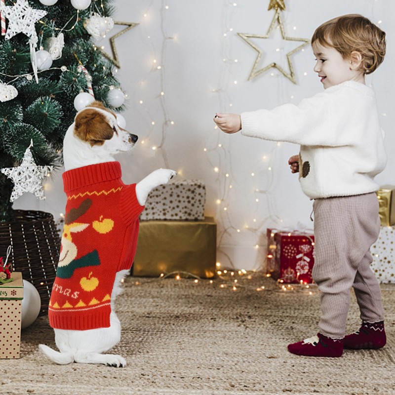 - Christmas Dog Sweaters: Our dog sweater Christmas is full of atmosphere of Christmas. Funny and stylish cute cartoon reindeer and Christmas Related pattern add a lovely and festive atmosphere, makes dog look adorable and charming. Boy girl dog sweater is a Perfect Christmas present for your lovely furbaby, When your dog wear a Knitwear dog sweater christmas, you can shar holiday spirit with your pup. Have a merry and warm Christmas with your lovely pets.