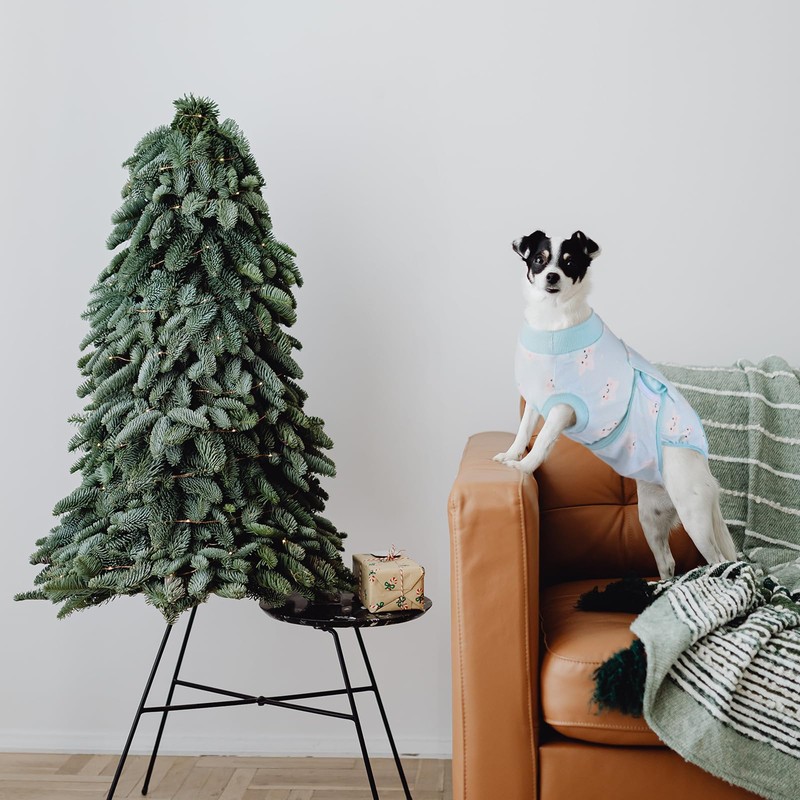 The elastic cotton fabric is comfortable and breathable. It can not only be used as a recovery suit after surgery, but also for dog pyjamas or daily clothes.
