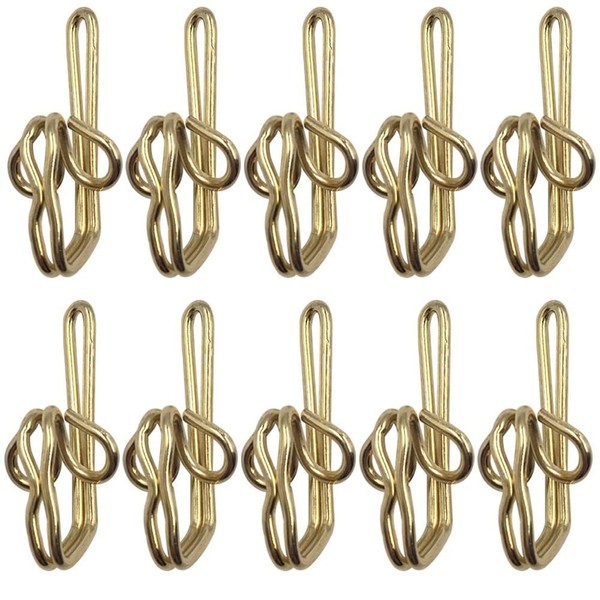 kuou 100 Pieces Brass Curtain Hooks, Metal Curtain Hook Brass Drapery Hooks, Curtain Hooks Brass Curtain Header Tape Drapery Hooks (Gold)